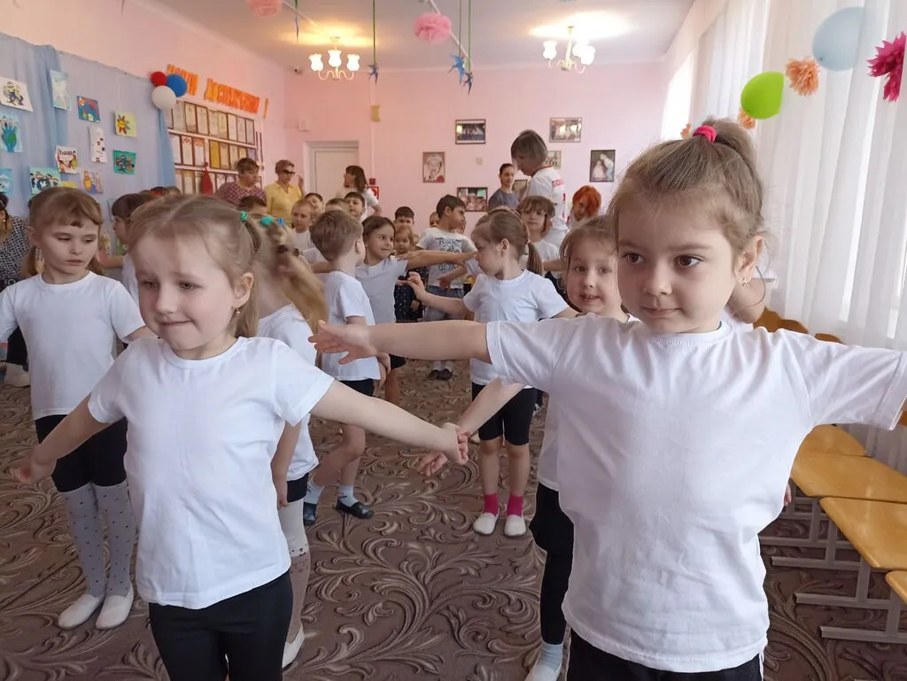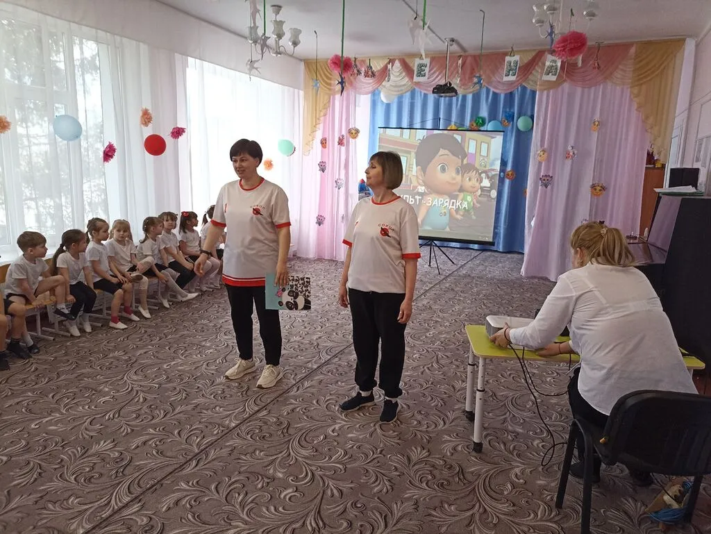 А потом, вместе с А.А. Фомченко, спортивным инструктором из Соколовского сельского поселения, и замечательными воспитателями, они дружно и весело размялись, выполняя весёлую зарядку.